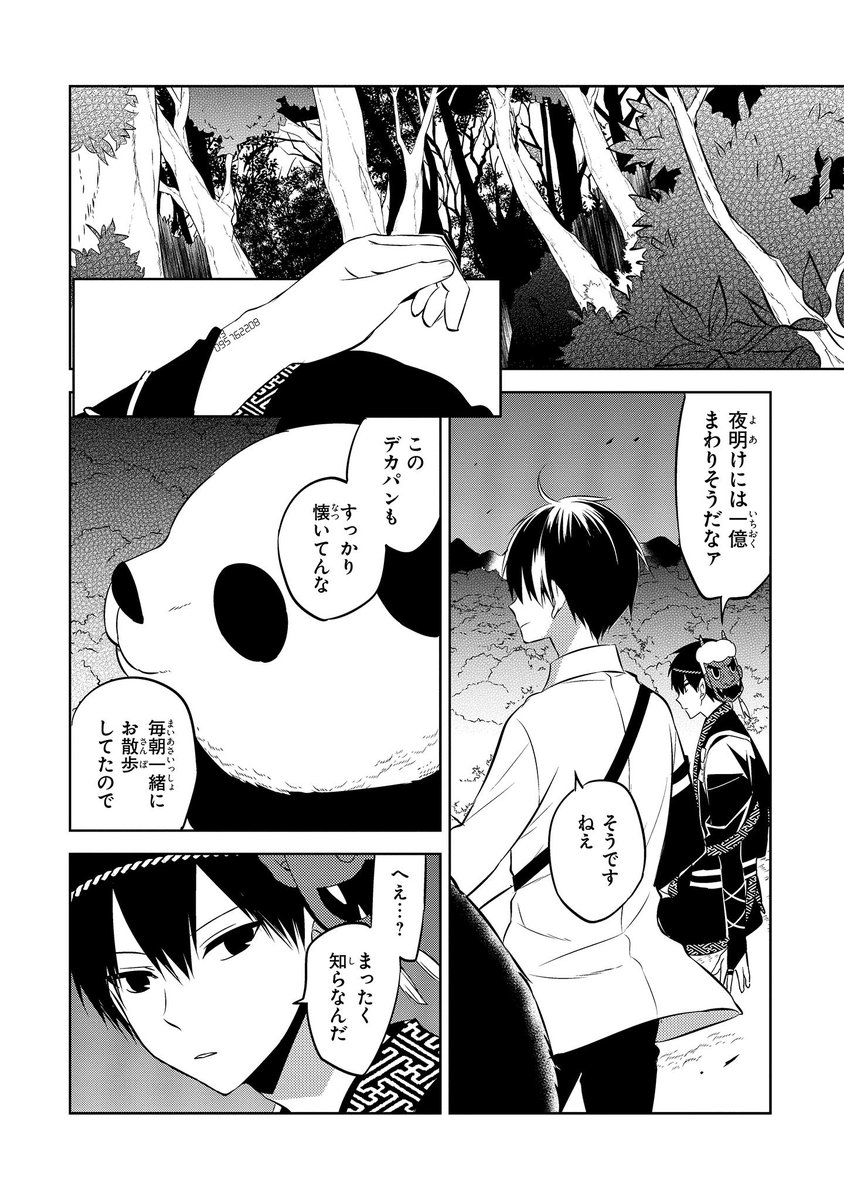 ロープを取りに来たカイコクを、アカツキはパン太郎に乗ってラフレシアまで送る。