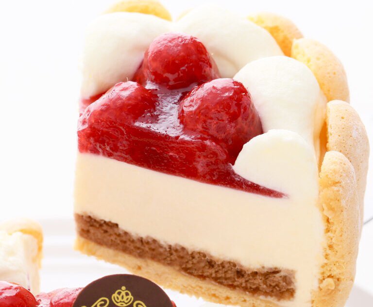 最高級洋菓子宅配専門店「洋菓子店カサミンゴー」の、北海道産の最高級カッテージチーズ、生クリームと真っ赤な木苺を合わせた見た目も鮮やかな「特注ハート型シュス木苺レアチーズケーキ」✨