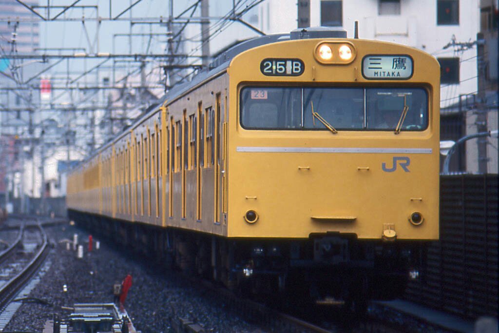三鷹の103系は高架と地下ばかり走行するので、イメージカットをあまり物にすることができませんでした。この時フルサイズデジタル一眼を持っていたら…。