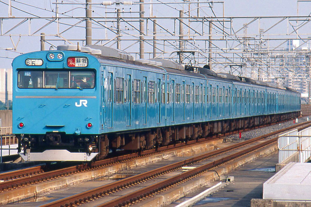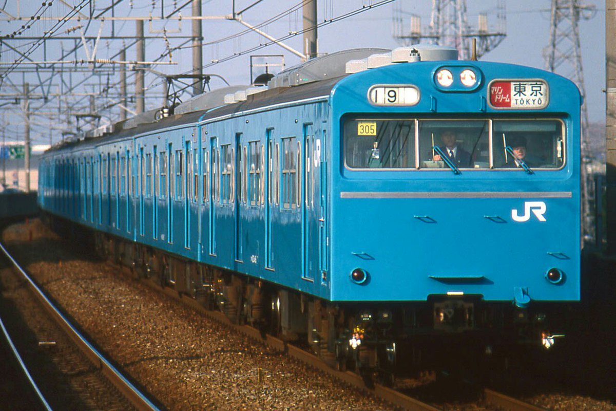 「マリンドリーム」幕を掲げて走る京葉線の103系。Yeahめっちゃ白ゴム。