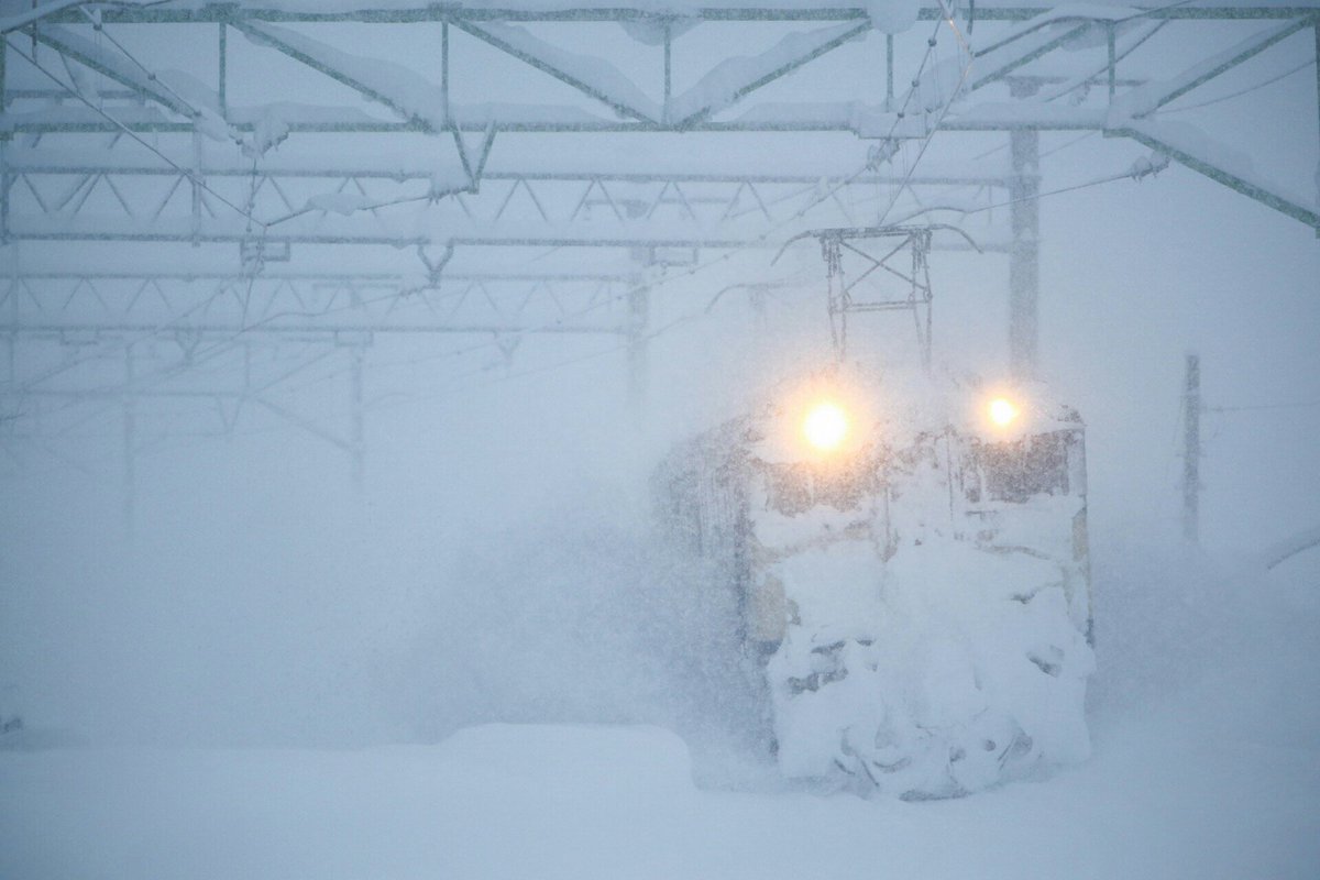 今日の上越カッター車は除雪の影響で遅れ、雪中行軍の単回状態でした。