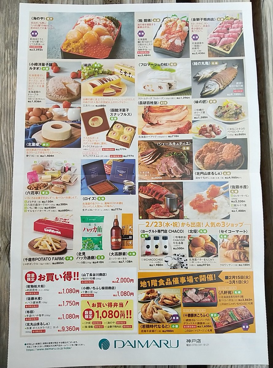 「北海道展2022」が大丸神戸店で開催されるようです。 daimaru.co.jp/kobe/topics/20…