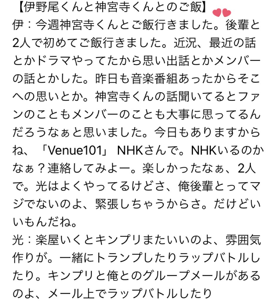 "今年の伊野尾慧公式うちわに購入特典をつける!"を有言実行、毎公演のようにギャルピレポをされていた伊野尾くん。その実態調査です!お時間のある時にぜひお付き合いください~!