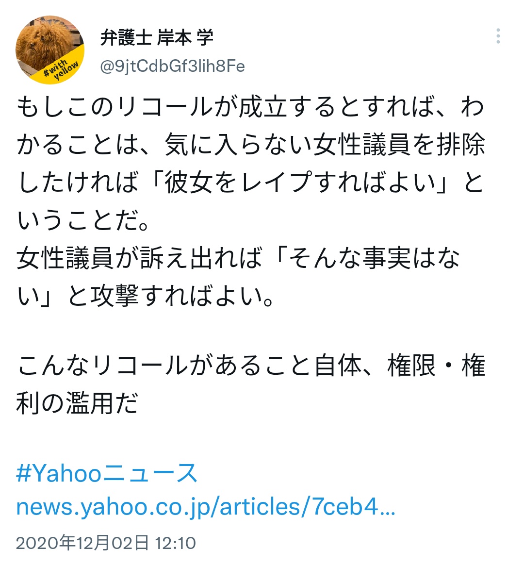 性被害を受けたと主張した側は虚偽告訴罪で在宅起訴されてますけど、集団で町長を再起不能にしようとした挙げ句に住民らも侮辱されたことについては、どのように思われるのでしょう。逃げずに答えてほしいですね。 twitter.com/ohtsubakiyuko/…