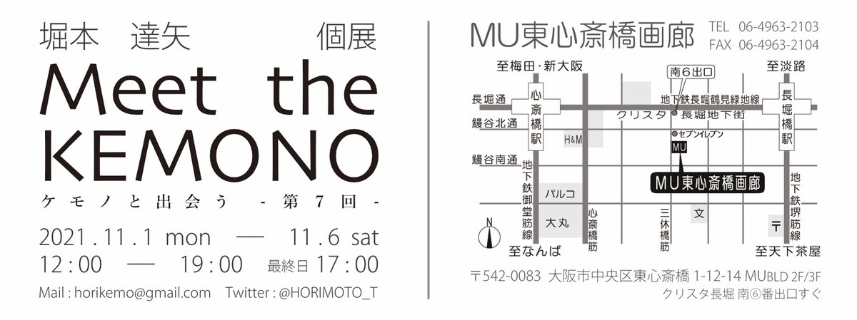 大阪にあります MU東心斎橋画廊 様にて、個展 Meet the KEMONO 第7回 を開催します。