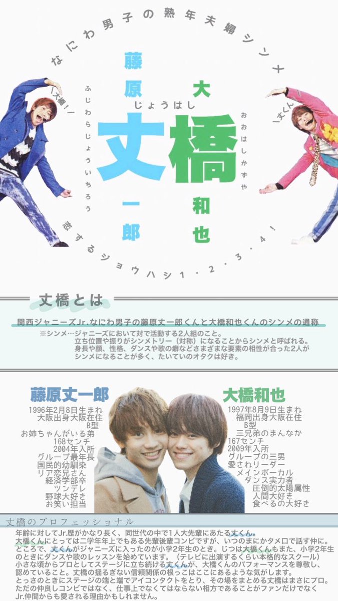 なにわ男子結成当初は丈くんが大橋くんの名前ばかり出すのを見て「やっぱりまだ今まであまり絡んでこなかった後輩と上手く馴染めていないんだろうか…」と神妙な面持ちになることもあったんだけど、仲良しになった今思えば全然普通に大橋くんが好きなだけだったので私の神妙な面持ち返してほしい