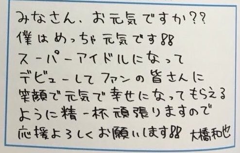 明日から 一日ずつ"ふつうの男の子"だった日より"アイドル大橋和也"として過ごす日のほうが長くなる、なんかすごいね