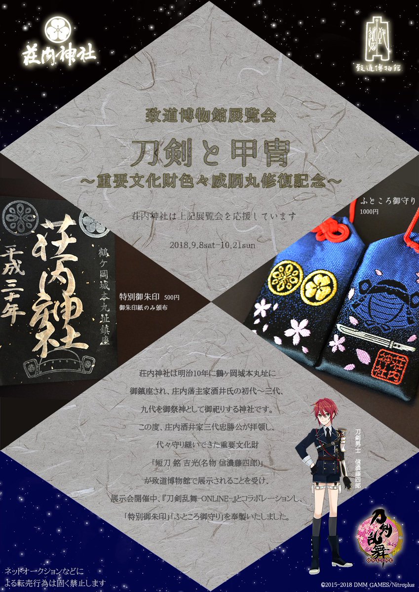 荘内神社では、9月8日(土)より致道博物館で行われる「刀剣と甲冑~重要文化