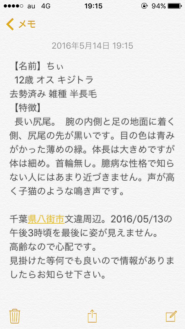 【拡散希望】猫を探してます。自宅周辺から行方不明です。名前:ちぃ、キジトラ♂。半長毛。口を閉じてもキバが八重歯みたいに見えます。家族以外には人見知りしますが名前を呼べば反応します。似た猫を見た等何でも良いのでどうか情報提供をお願いします。 #千葉県 #八街市 #迷い猫 #迷子猫 #猫
