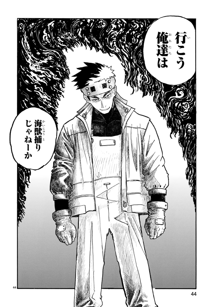ロボットが海にいる怪獣と戦って、倒した怪獣を食べる話です。