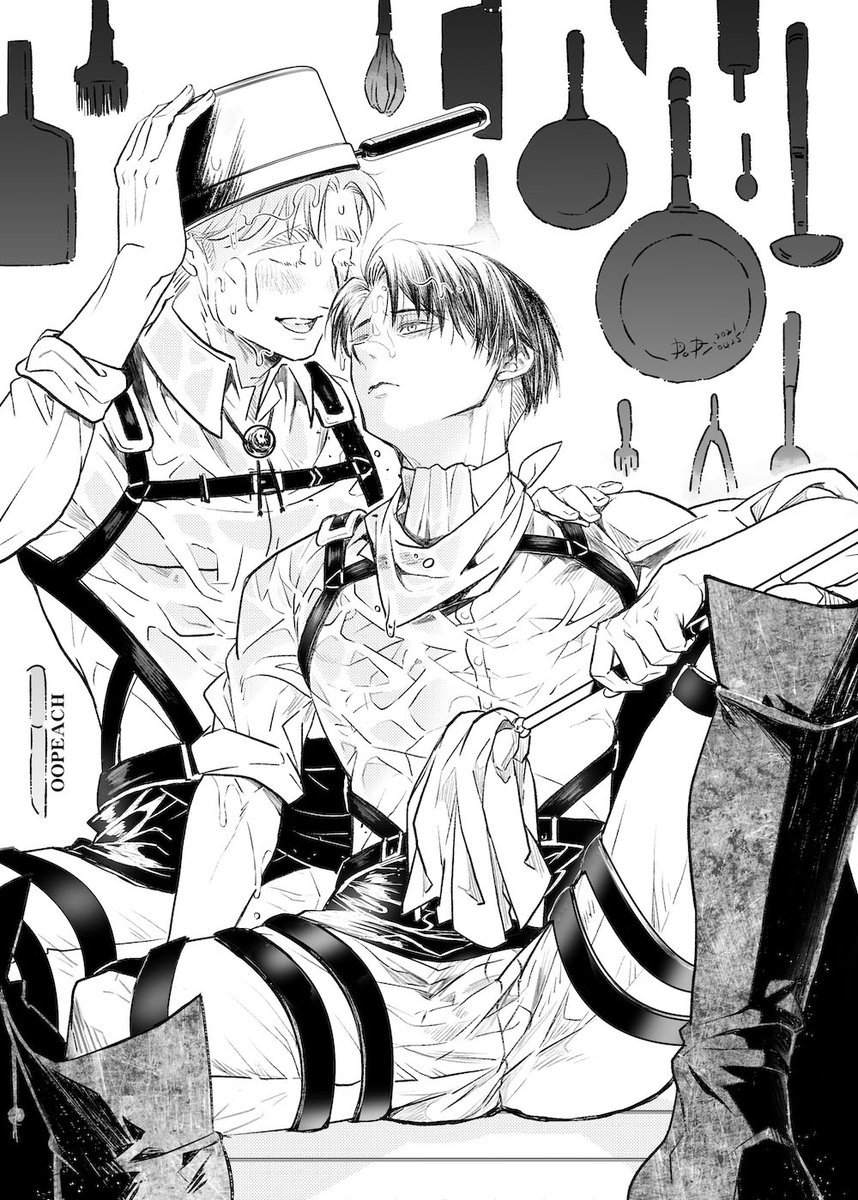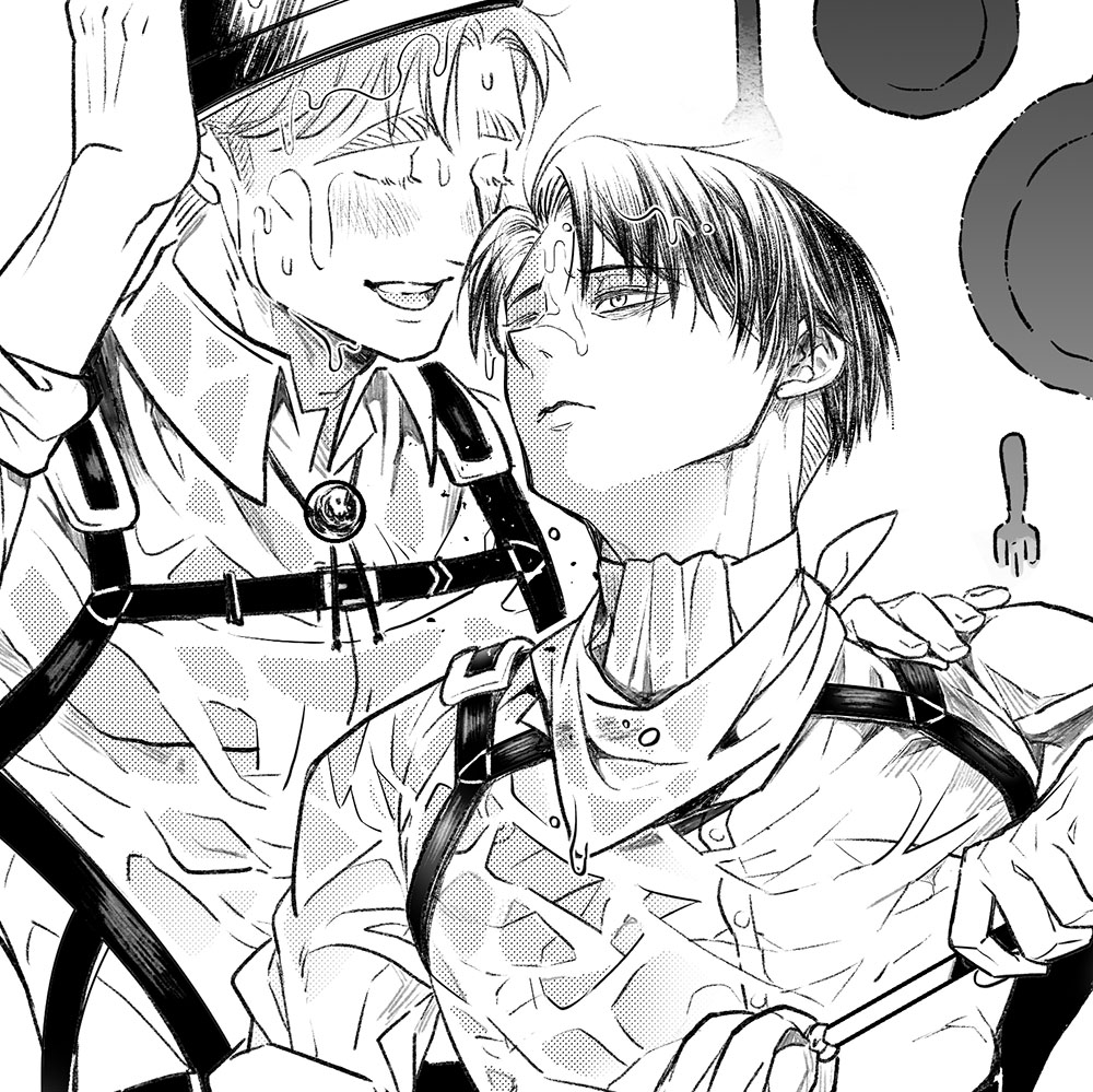 請畫「兵長帥氣的打掃廚房在白天跟團長不能有別人」