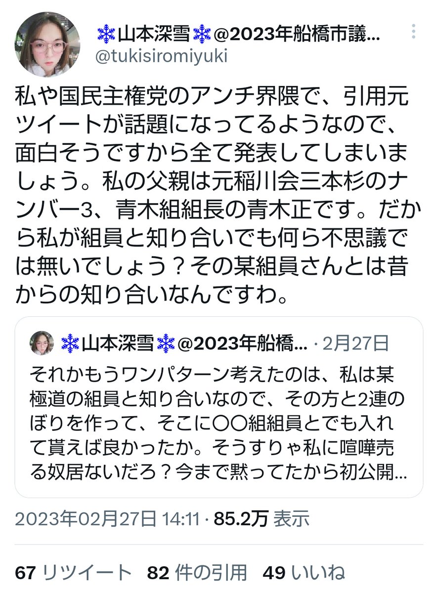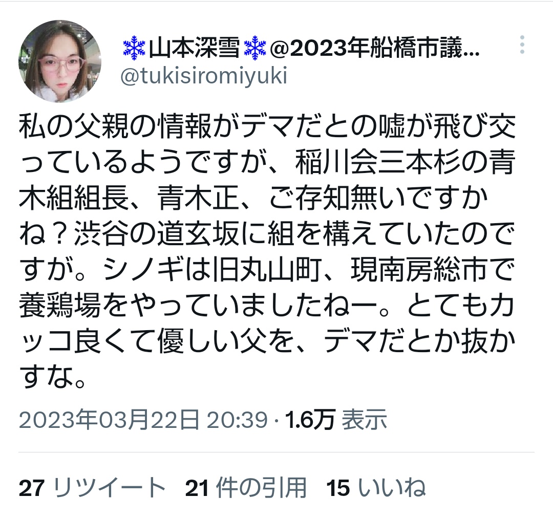 ヤクザから足を洗っ的今はまじめに生きているとか、ヤクザの家系だけどヤクザは肯定していない、という人を差別してはいけないが、ヤクザの家系・関係者であることを自慢し、ヤクザの名前を出して自分への批判を封じ込めようとするやつは糾弾するしかないだろう。