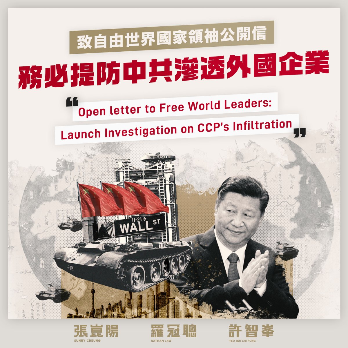 @SunnyCheungky, @tedhuichifung, and I have written an open letter appealing for actions