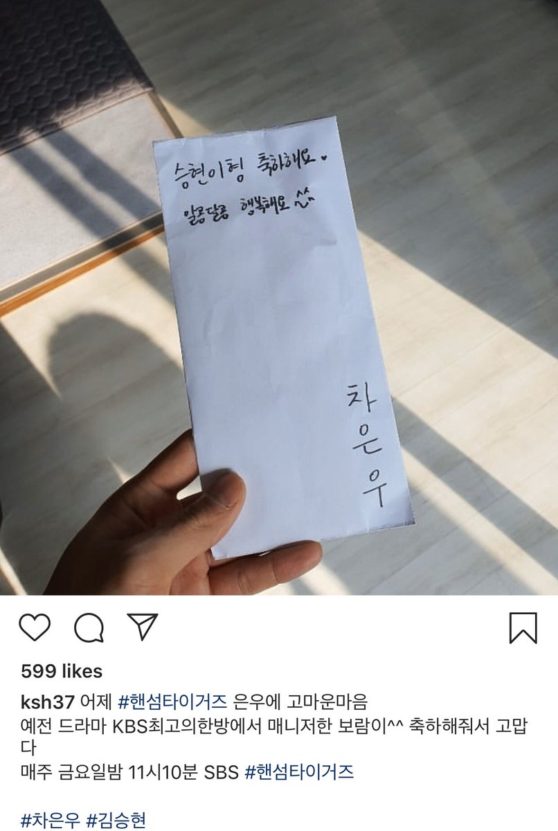 [PIC] เนื่องจากวันแต่งงานของคุณคิมซึงฮยอน (Handsome Tigers) #ชาอึนอู ติดงานที่ต่างประเทศไม่สามารถไปได้ จึงส่งของขวัญพร้อมข้อความว่า