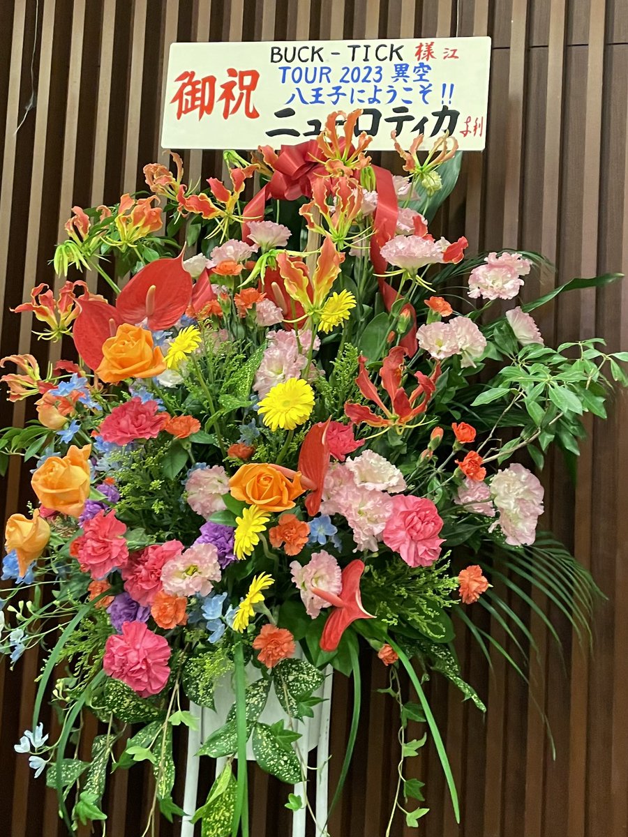BUCK-TICK高崎から帰宅中。徐々にいつもの感覚に戻りつつある空気で良いライヴでした。メンバー紹介に上毛かるたを絡めるのは、群馬出身バンドあるあるなのかw あと元阪神タイガースの川尻選手からお花届いてたのが嬉しい。