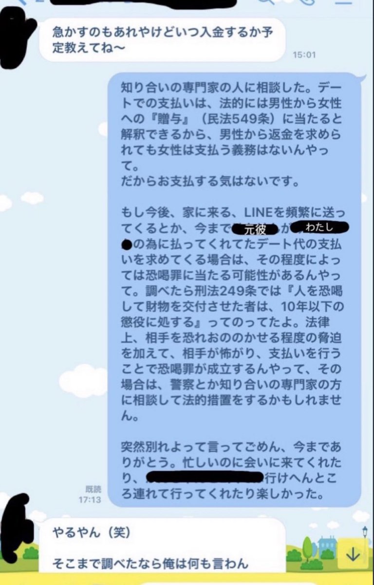 【定期】 別れた途端に金銭の請求をされたらこちらをお使いください。