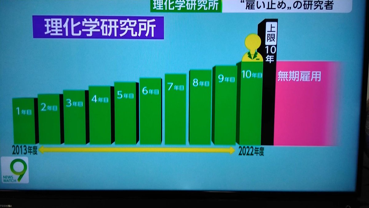 昨夜のNHKニュースウォッチ9は、理研の380人の雇い止めについて、数々の業績をあげ、世界が注目する研究開発を行ってきた優秀な研究者を使い捨てにしている実態を告発。