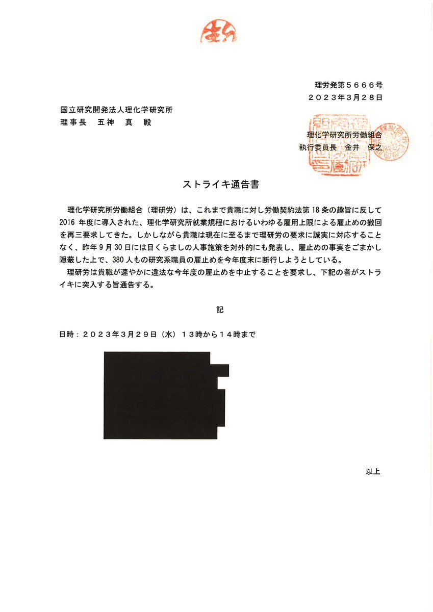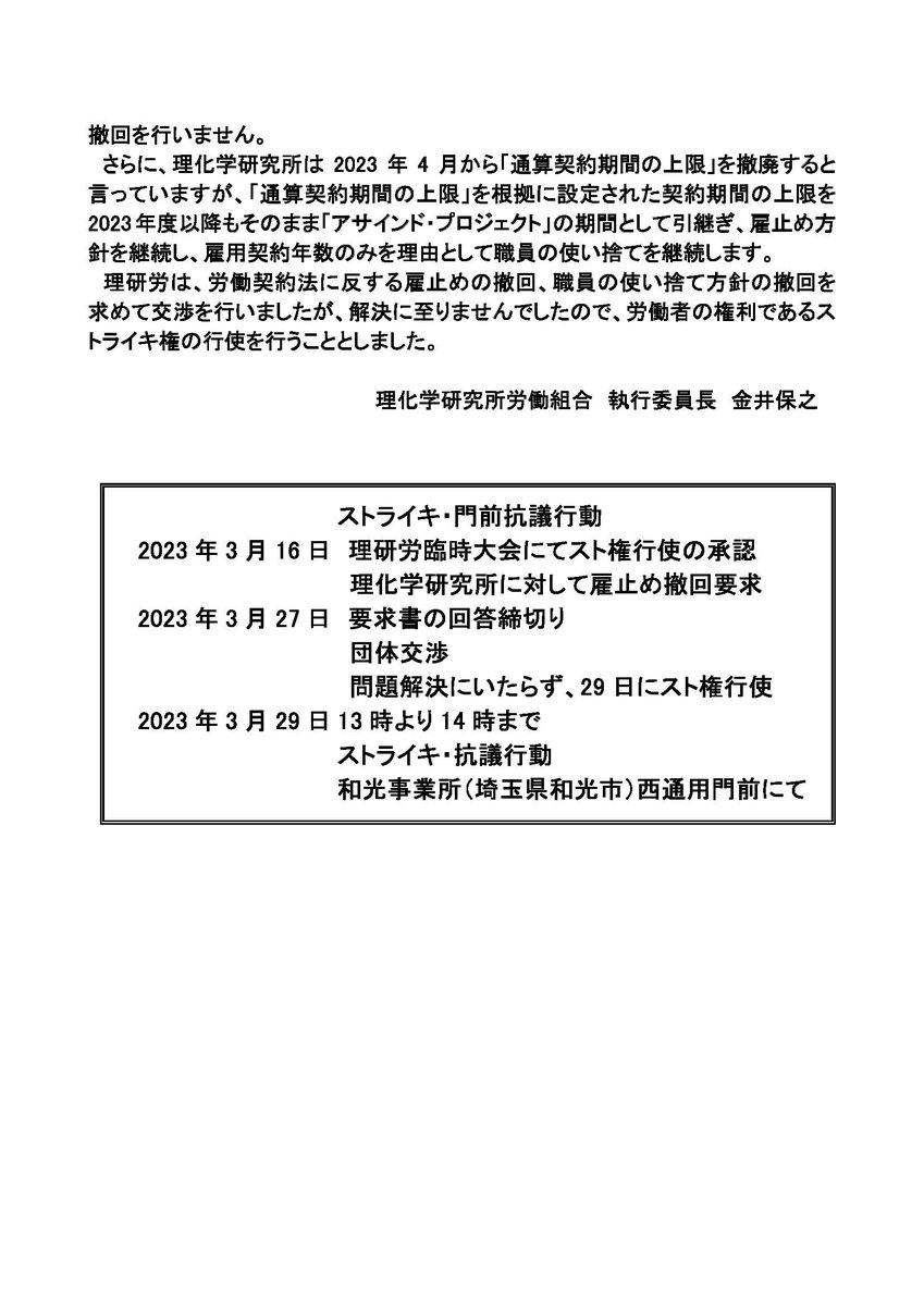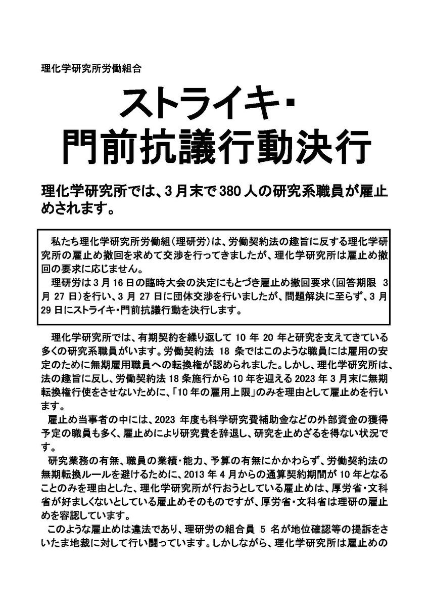 #理研労のストライキに連帯します