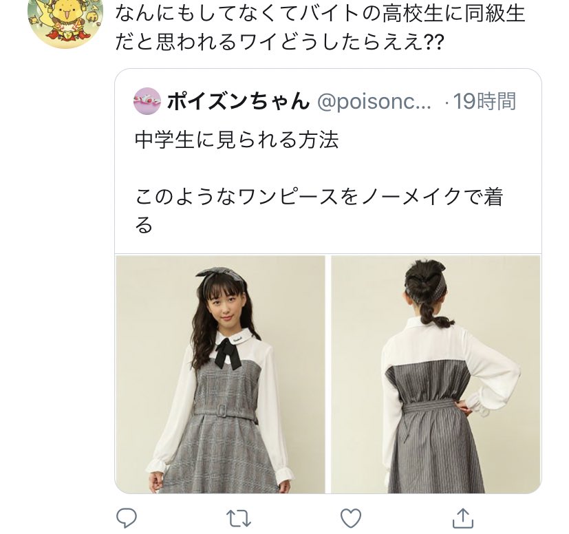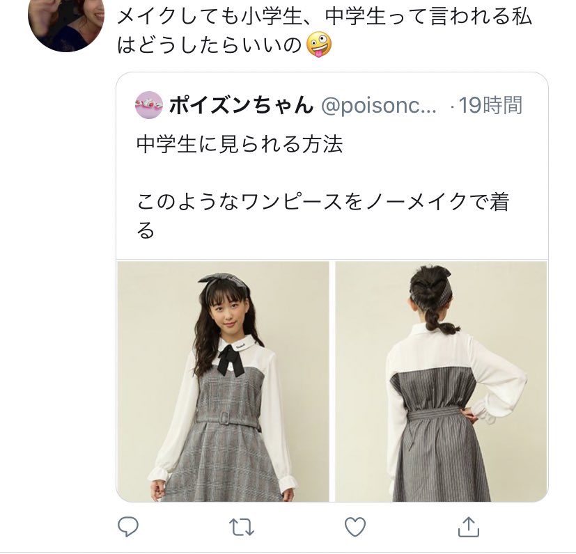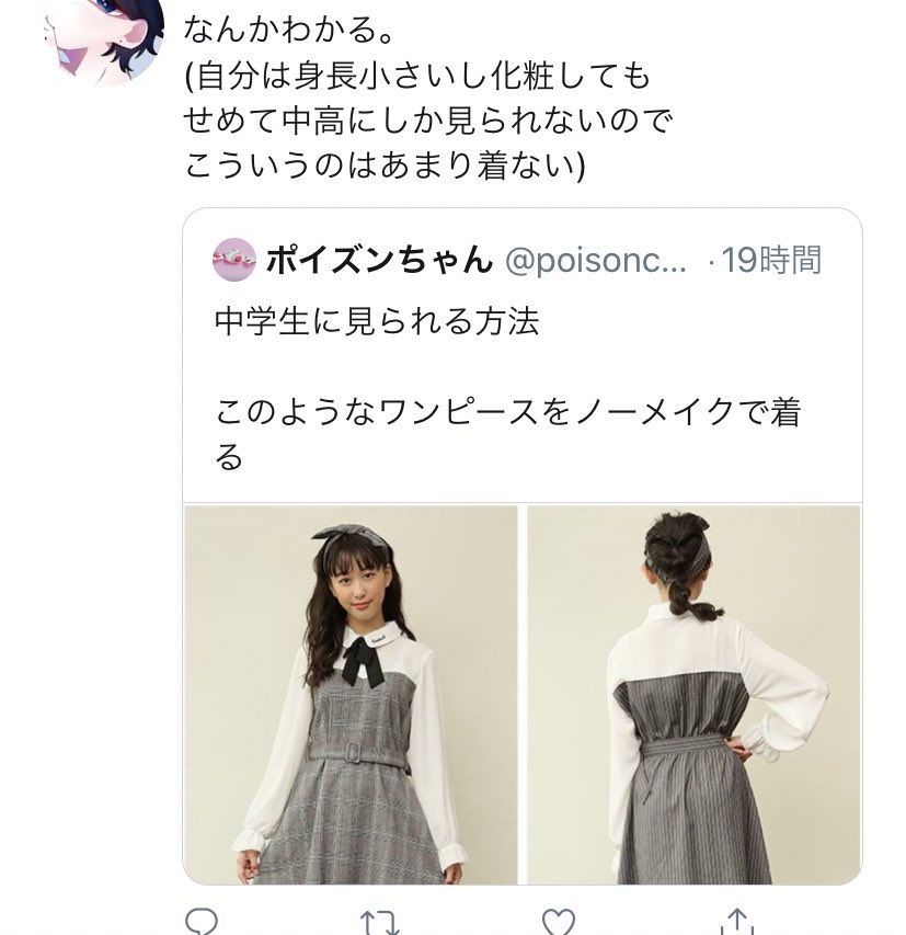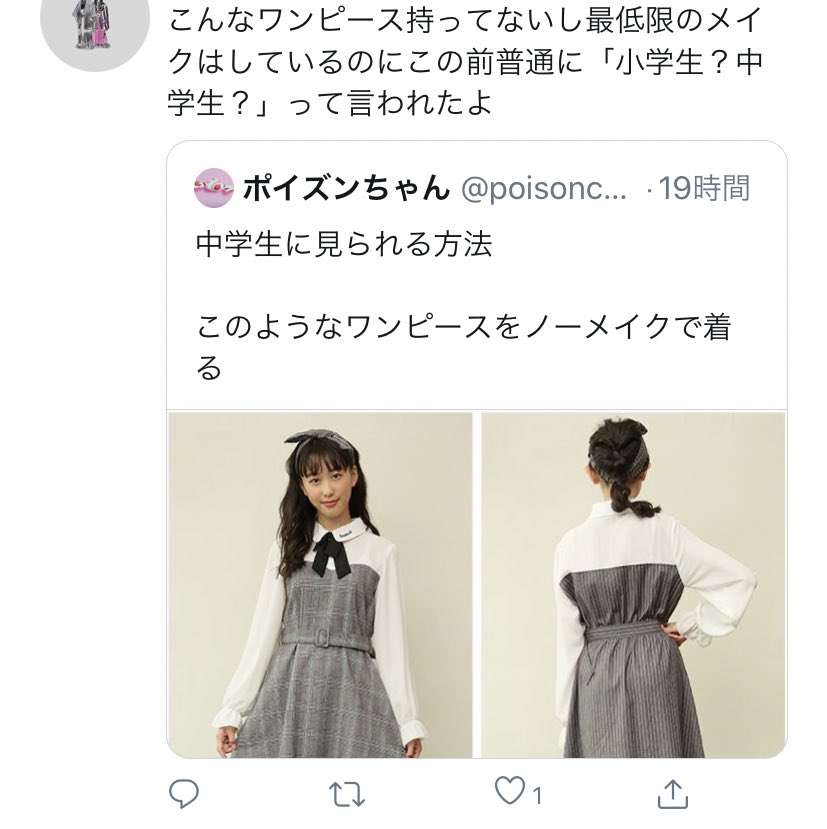 私こんなワンピース着ないしなんなら服センス良いねっていつも言われるのにそれでも顔見ると中学生にしか見えないらしい😂