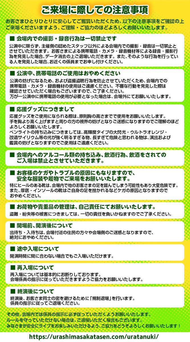 【うらたぬきバースデーライブご来場に関する注意事項】