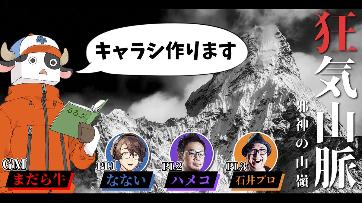 『狂気山脈 陰謀の分水嶺』を以下のメンバーで遊びます!各視点配信予定です!