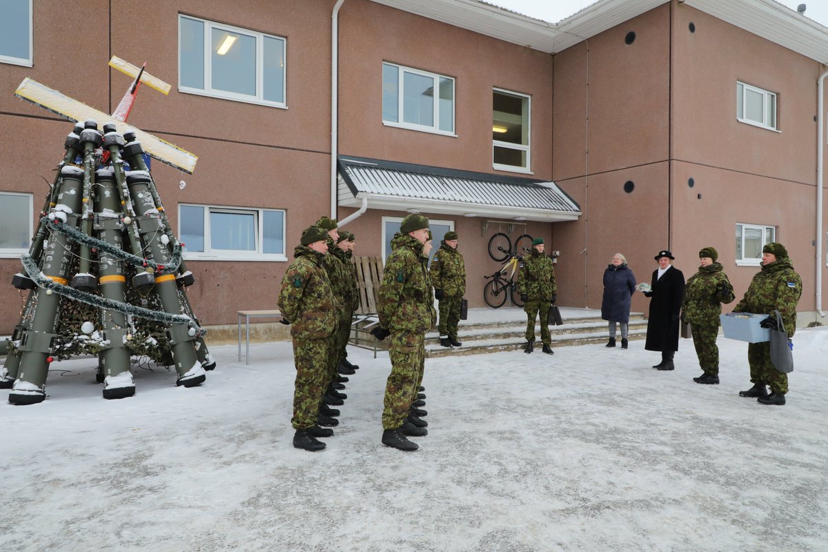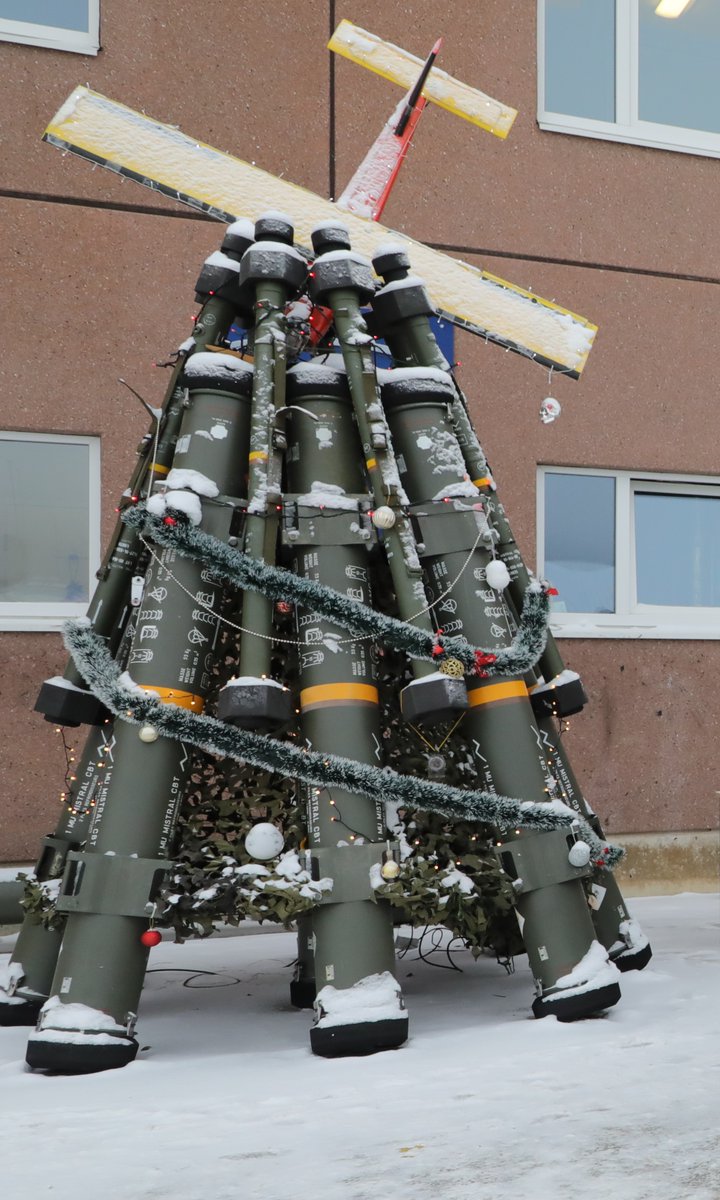 エストニアの人が対空ミサイルの撃ち殻でクリスマスツリーを作っています