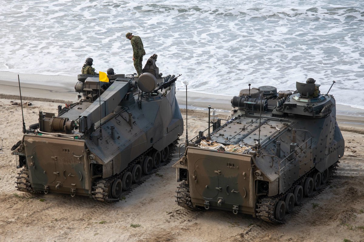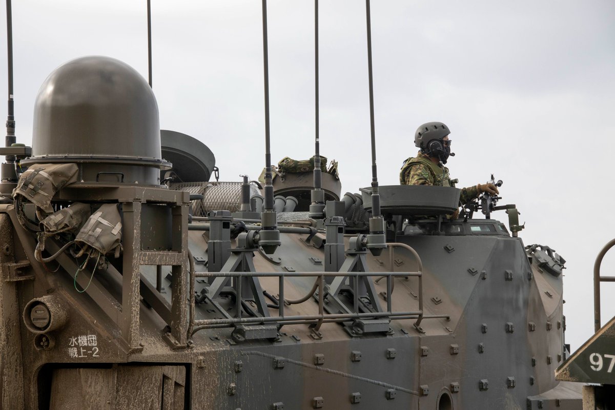 アメリカ国にいる自衛隊のAAV7にアシカとM240という機関銃がのっています