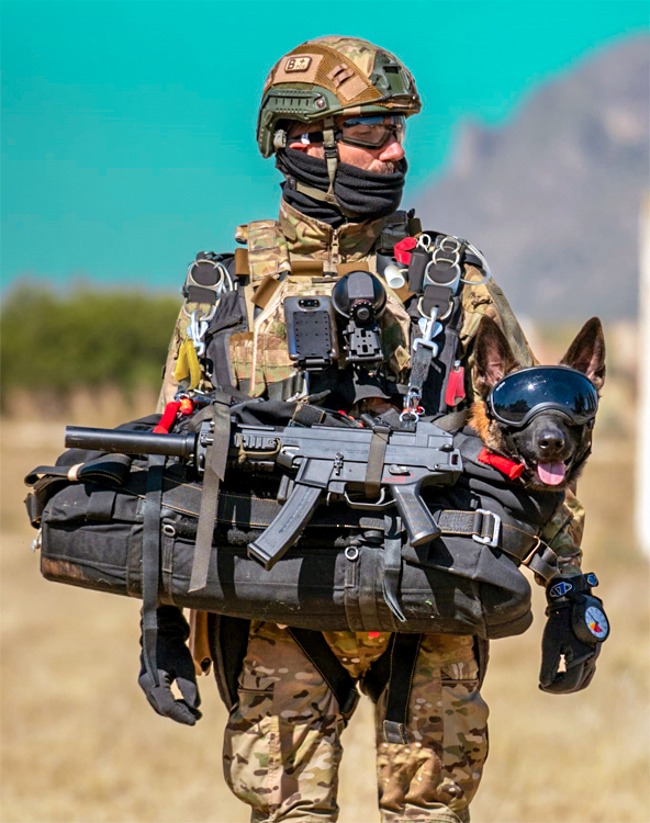 スペインの人が消音機のついたUMPと犬を持っています