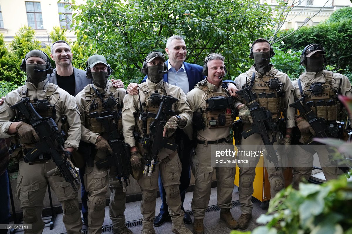 ウクライナを訪問しているドイツのショルツ首相の警護をしていると思われる連邦刑事庁のASEという特殊部隊の人がG36を持ってクリチコ兄弟と写真を撮っています