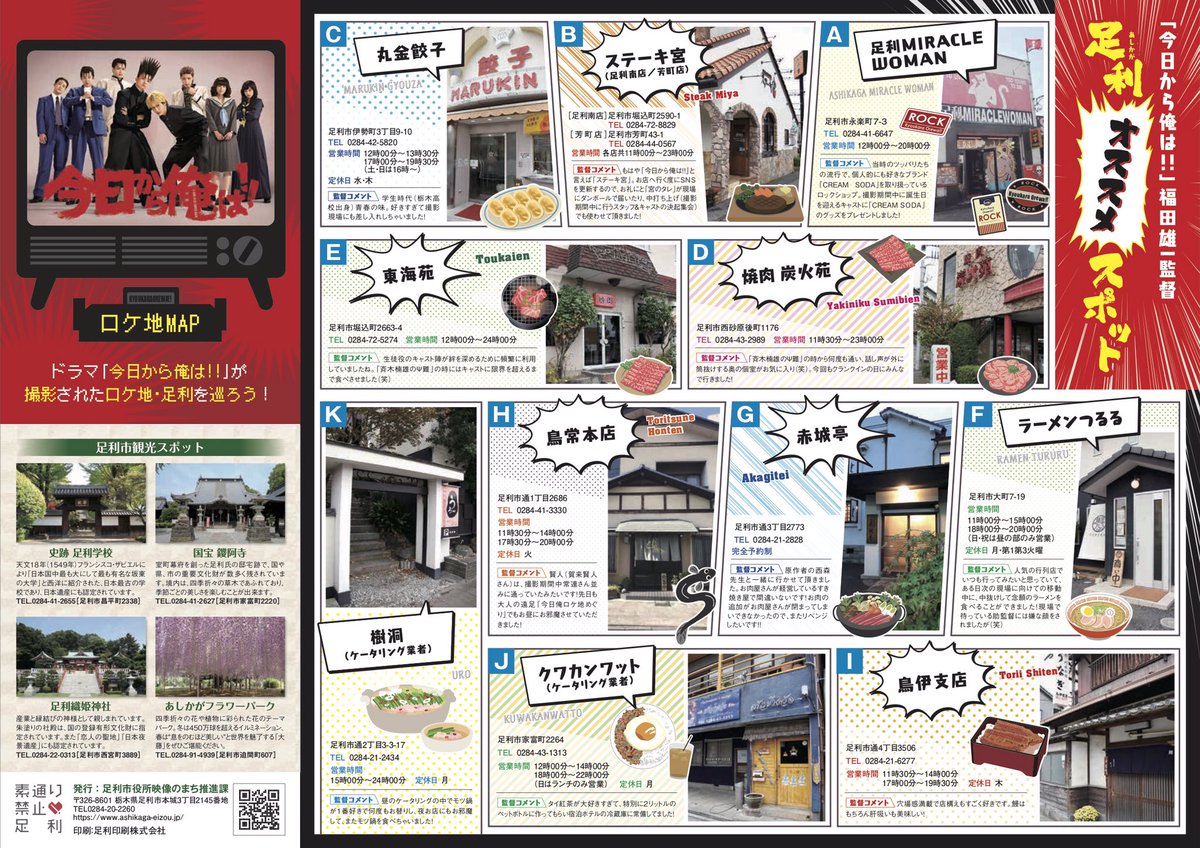 「今日俺ロケ地マップ」が完成しましたので、ぜひまた足利でロケ地巡りしましょう🙆♂️