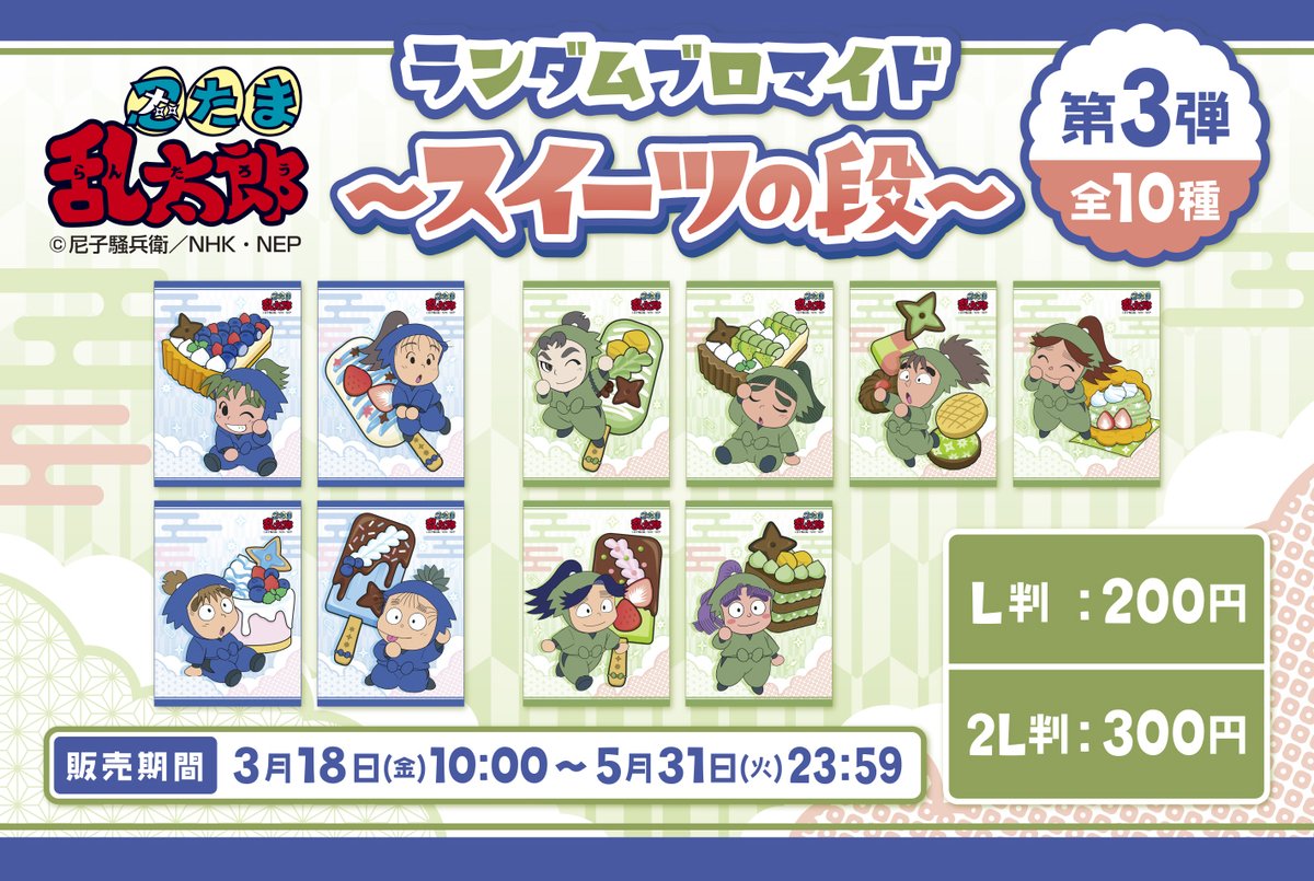 忍たま乱太郎のファミマプリント~スイーツの段~は、いよいよ明日5/31 23:59まで🍰🧁🍬🍭🍢🍩!