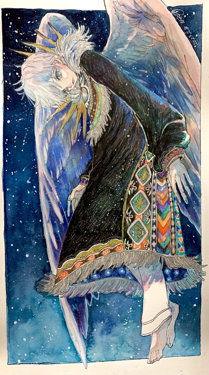 ペン画+水彩+色鉛筆
