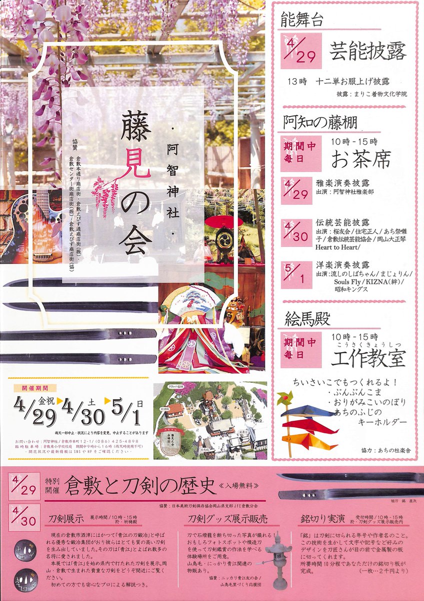 GWのスタート、4/29、30の両日に倉敷美観地区内の阿智神社様にて藤見の会と共同開催で