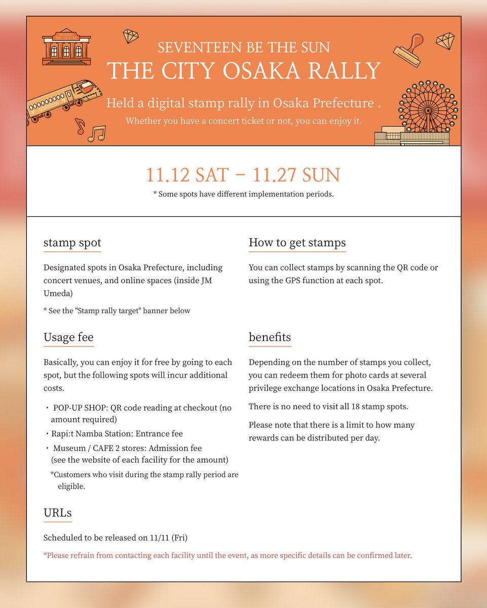 แรลรี่ที่โอซาก้า: เข้าฟรี แต่มีบางที่อาจจะต้องเสียงเงิน มีสแตมป์ 18 จุด ไม่จำเป็นต้องแตมป์หมดก็สามารถได้เบเนฟิตได้ แต่ฟตกที่จะได้ก็จะต่างกันไปนะ มี pop-up store, museum, cafe, รถไฟ, ชิงช้าสวรรค์ hep five แต่ละชั้นจะเปิดเพลงเซบ+มีสแตนดี้เซบเท่าตัวจริงตั้ง - twitter.com/lupinnme/statu…