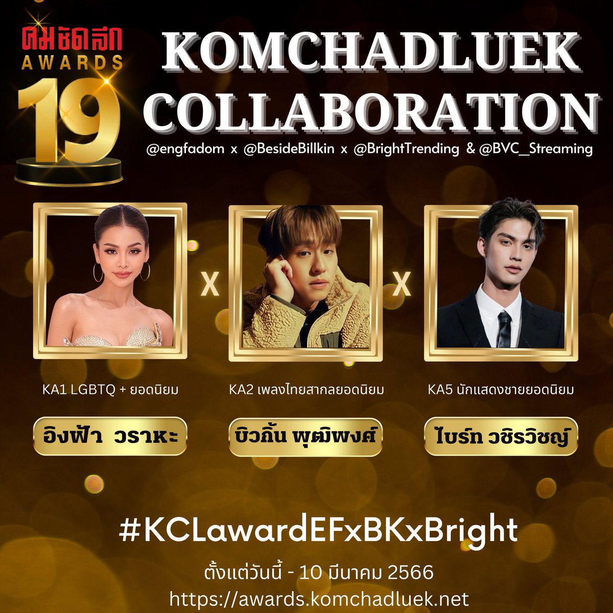 การคอลแลปโหวตครั้งนี้ยังดำเนินไปต่อค่ะ ฝากแฟนๆทั้ง 2 ด้อมรวมพลังพาอิงฟ้าและบิวกิ้นไปรับรางวัลกัน อย่าลืมแวะมาอวดผ่านแท็กกันด้วยน้า #KCLawardEngfaxBillkin