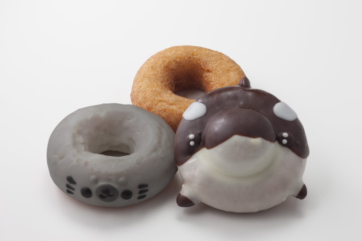 イクミママのどうぶつドーナツの鴨シーオリジナル「シャチ」セット(3個入り)・「セイウチくん」セット(3個入り)が大好評!どちらもメインゲートの「マリンマーケット」にて930円で販売中です。