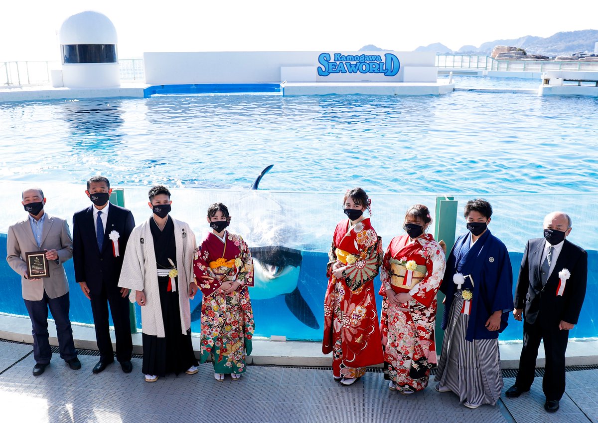 鴨川シーワールドでは、シャチ「ララ」が鴨川市の新成人代表者に見守られ、成人式典を行いました。