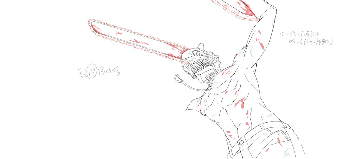 本日24時〜チェンソーマン4話!!!!何卒宜しくお願いします!!!!〝最高〝の助っ人に手伝ってもらってますが、1話ぶりにメイン総作監やってます!!!宜しくお願いします! #チェンソーマン #chainsawman