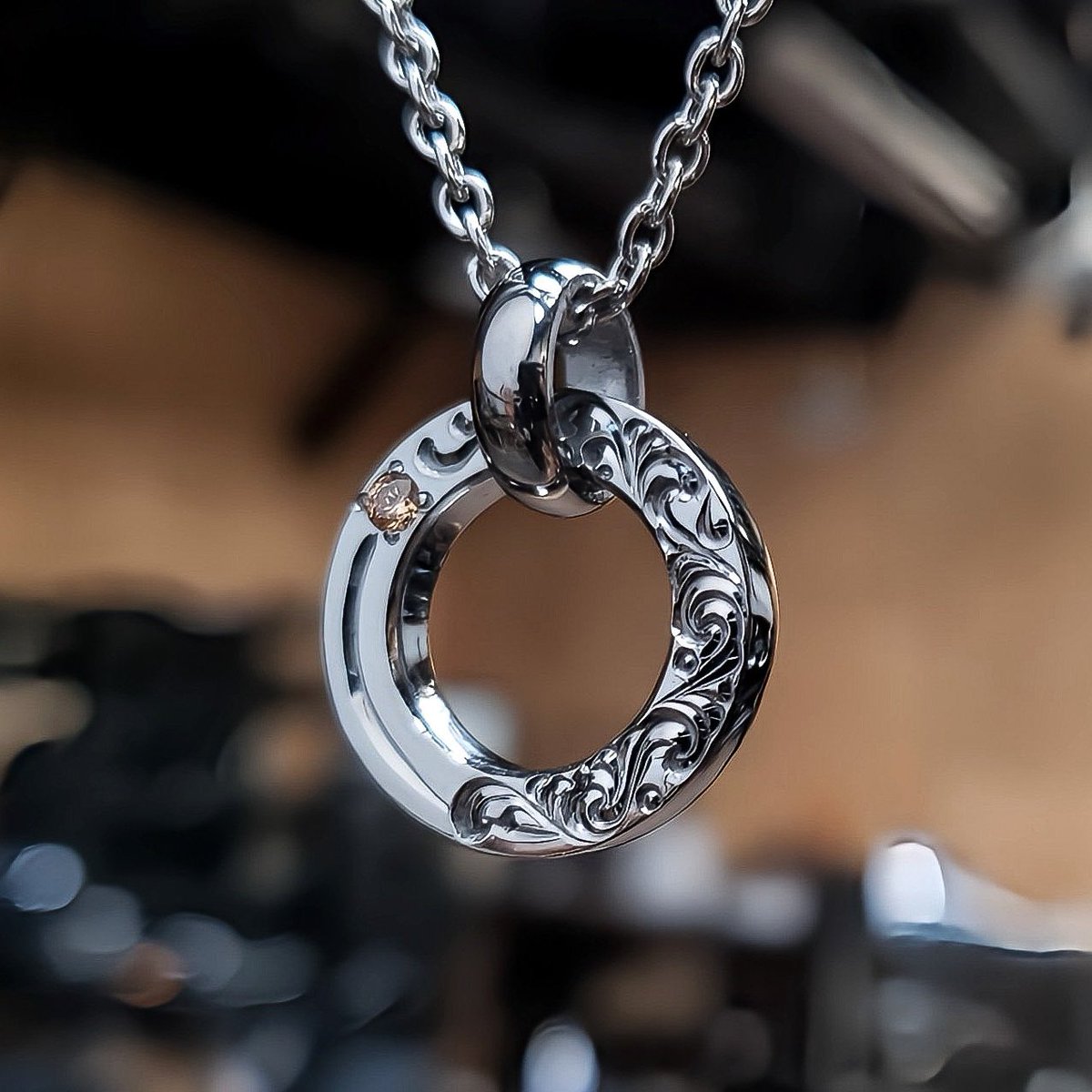 Jinny’s製作のブラックコーティングを施した両面手彫りのペンダントトップです。
