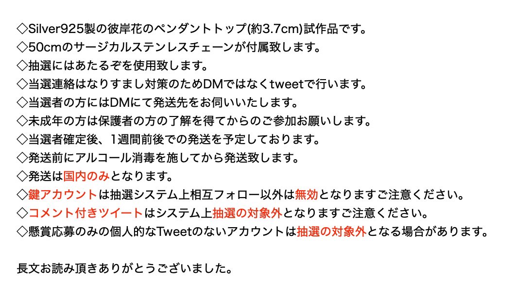抽選で1名様にSV925製月に彼岸花ペンダントよりお好きな方をプレゼント致します
