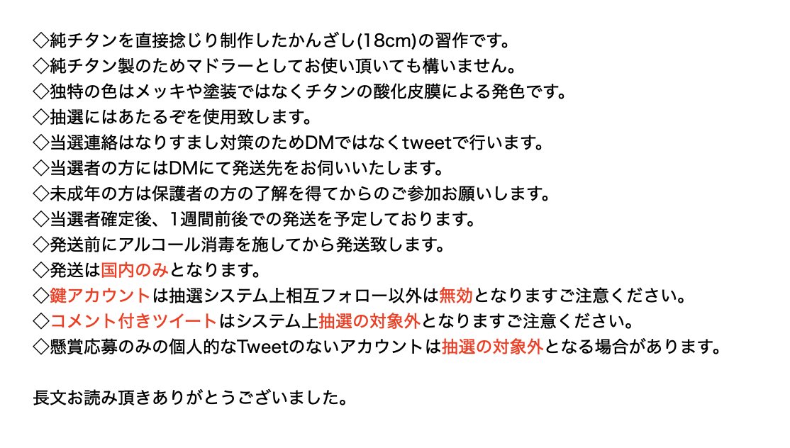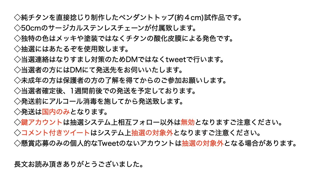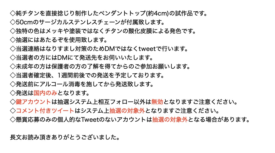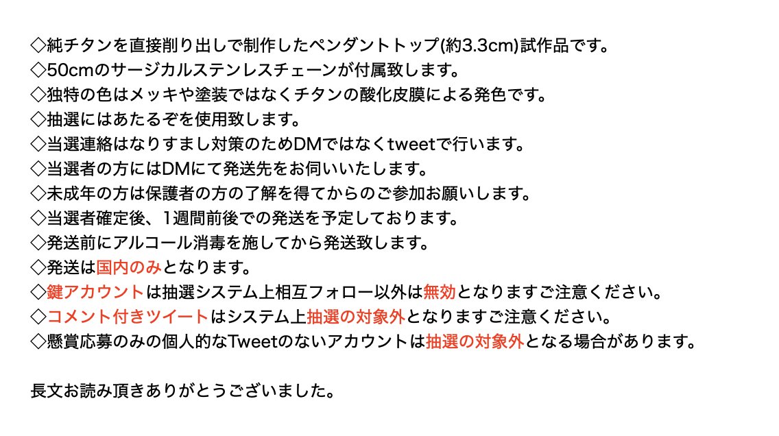 フォロー&RTで今回追加が間に合わなかったチタン製ペンダントトップ試作をプレゼント