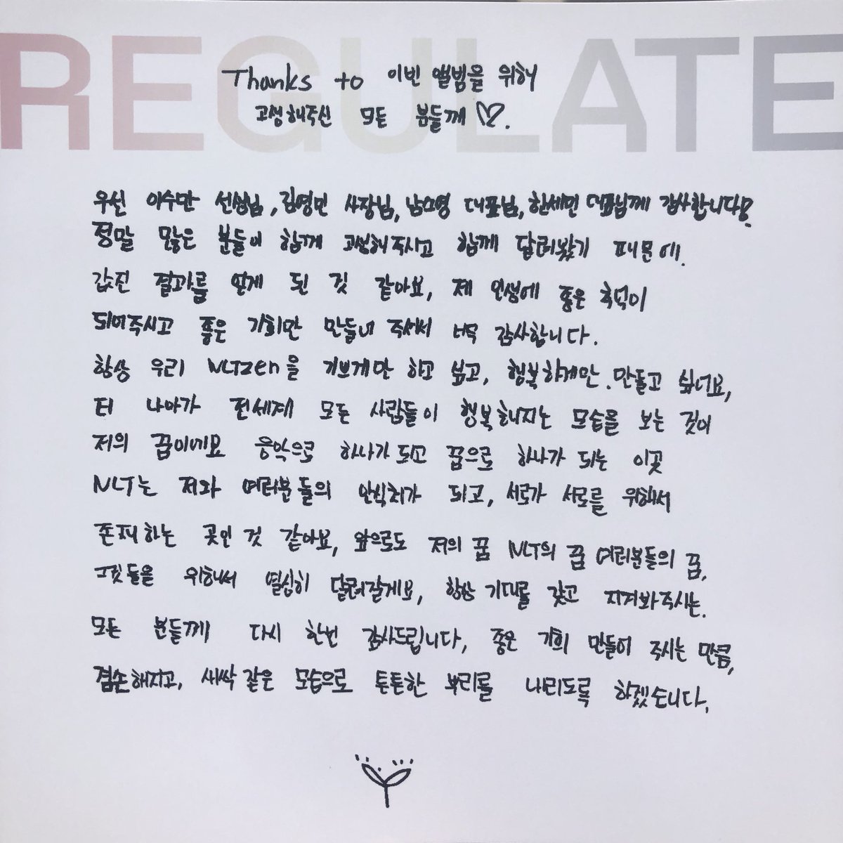 初めて僕がこの歌手をしたいと思った時の事が思い出されるんですが、またその時の事を思い出させてくれた皆さんに凄く感謝し、これからも頑張りますので..一緒にゆっくり少しずつ歩いていきましょう。カムサハムニダ