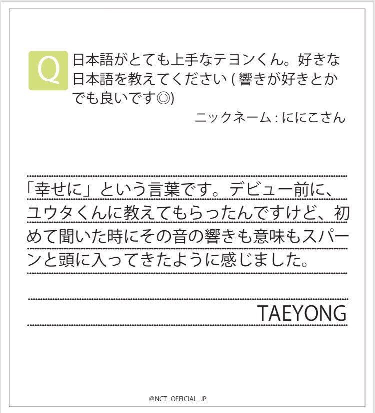 いつかのサイン会で、大学生活に不安を持つシズニに送ったテヨンの言葉。