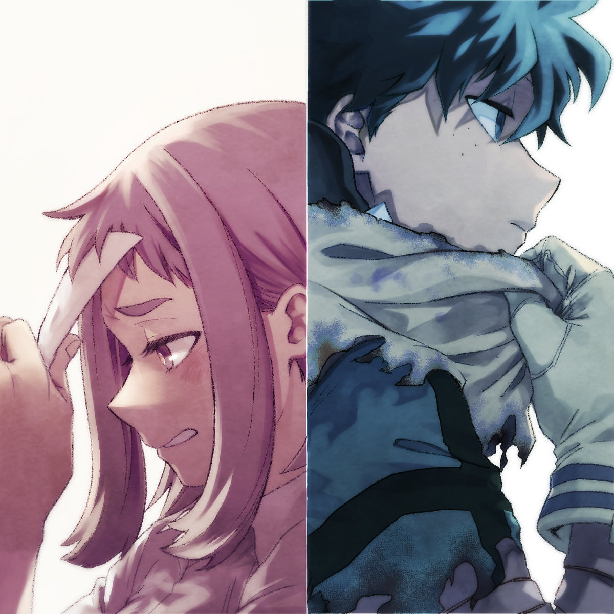 今回お茶子がデクに抱きついていたことを指摘されて赤面するシーンは.原作だと隣にいるデクも無言ながら赤面してるトーン貼ってあったし、小さすぎてトーン貼ってなかったコマも単行本でわざわざトーン追加されてたくらい、地味にデクも意識していたことがわかる貴重シーンなのでカット寂しいな……