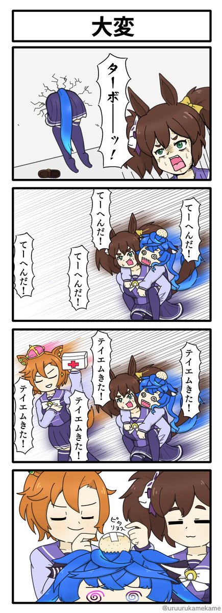 ツインターボが大変な四コマ漫画です。