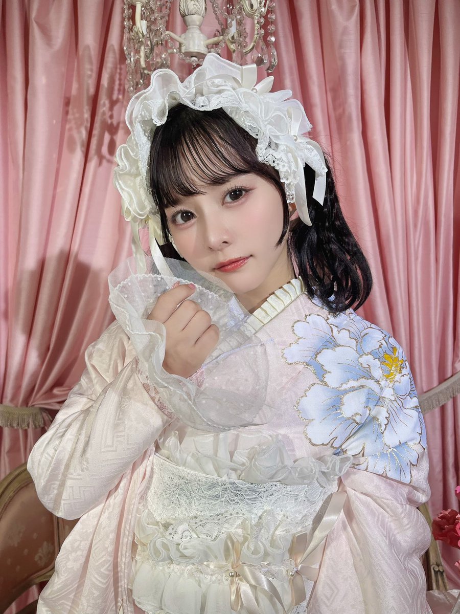 新作のパウダーピンク振袖をLARME 055でなーたんが着てくれています🤍レースの付け袖やリボンの飾りつけも参考にしてね♡🐰