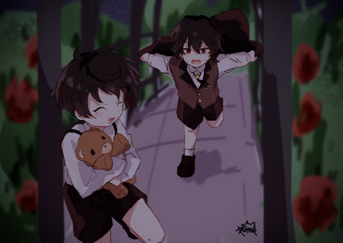 夜空の下で鬼ごっこする幼少期さくまの妄想(!朔間零[兄の愛]カードストーリー『吸血鬼兄弟』参照)