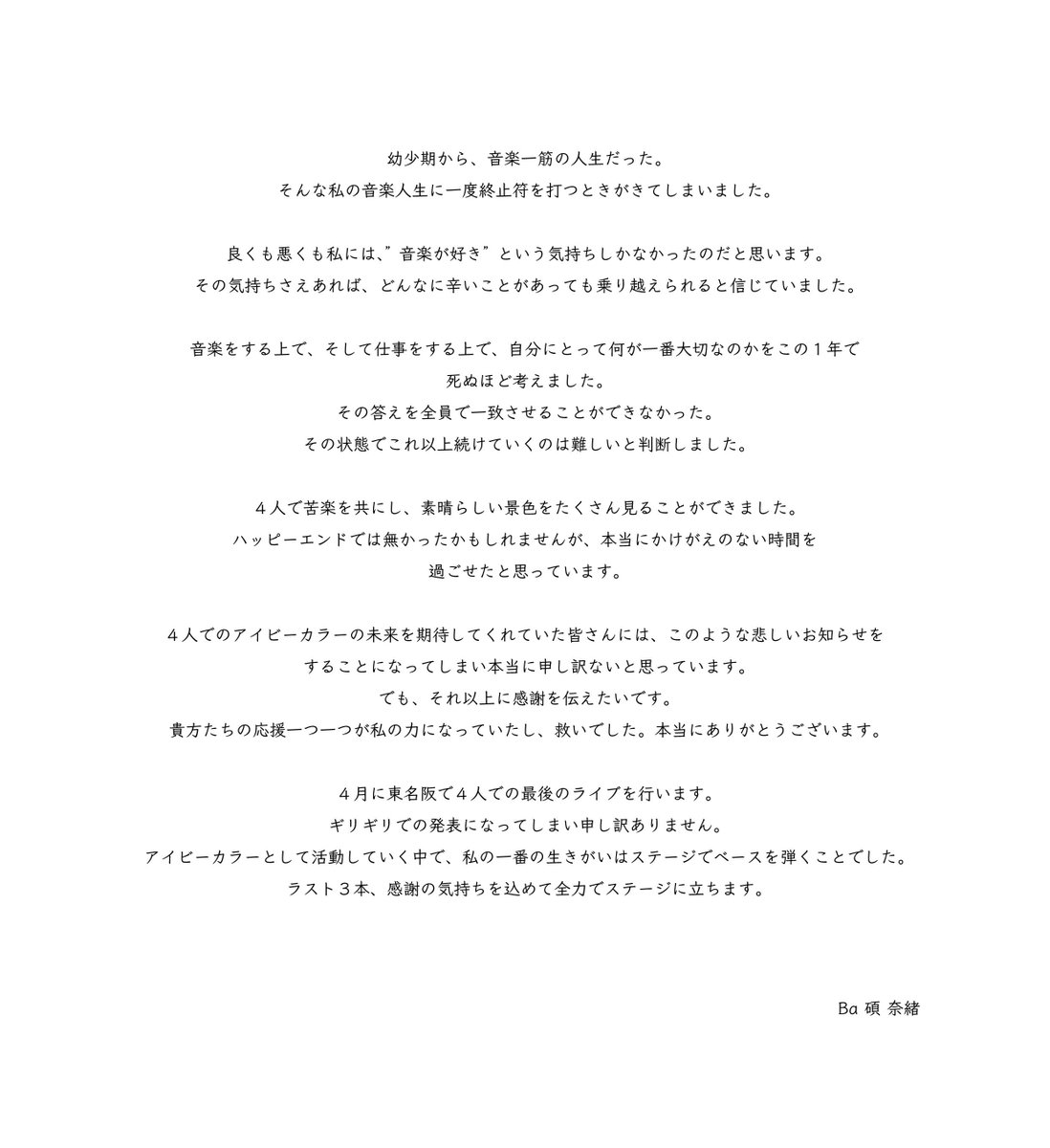 この4人での最後のライブを終えました