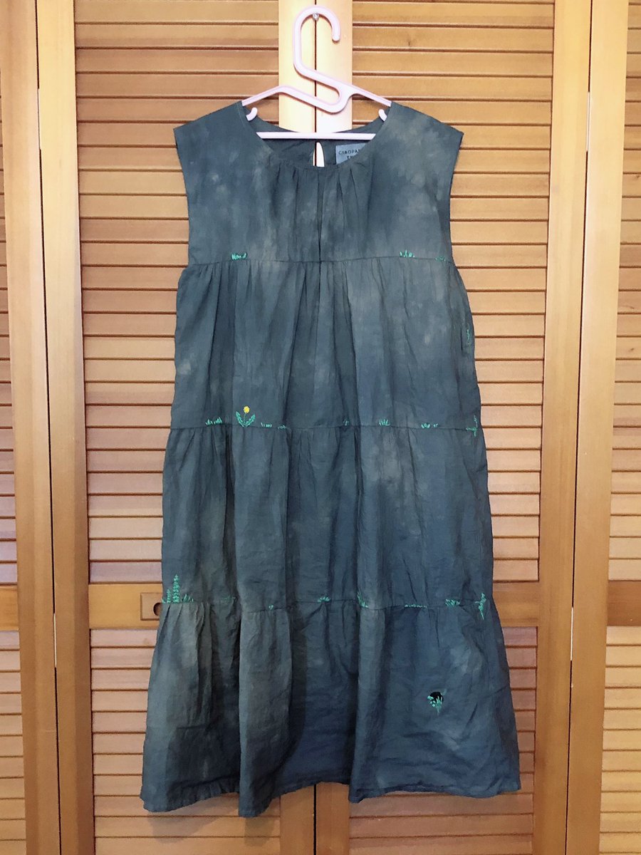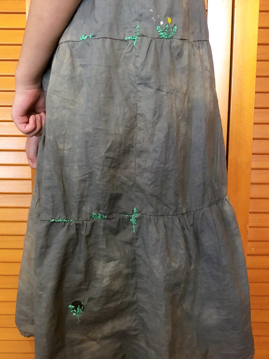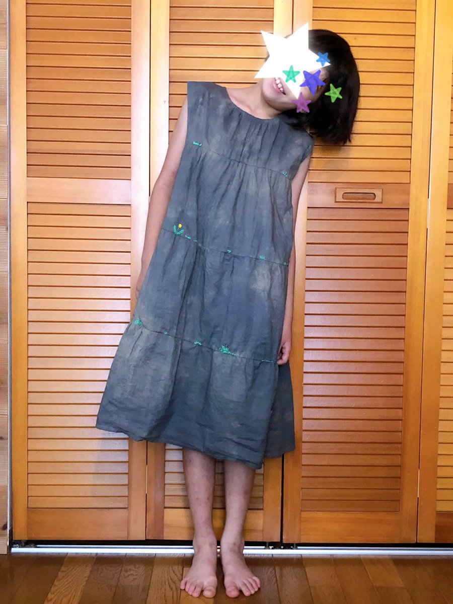 染めムラワンピース、刺繍でリカバリを図ろうと思い娘に何刺繍して欲しいか聞いたところ、
