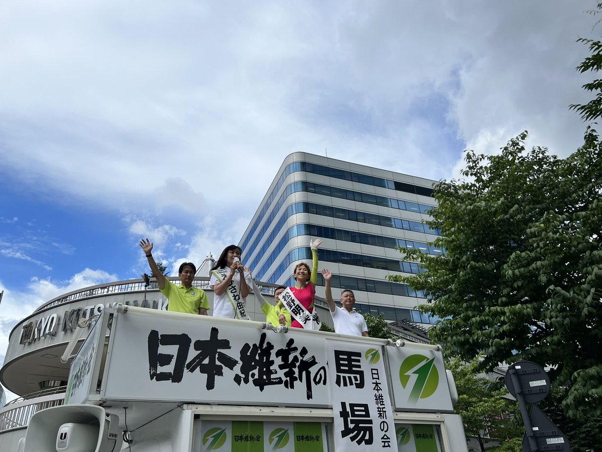 馬場伸幸共同代表と藤田文武幹事長が応援に来てくださるとのことで、連日の党幹部入り本当に感謝です。